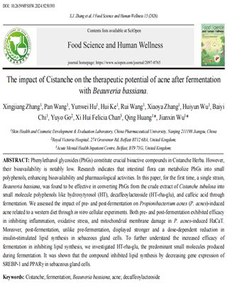 肉蓯蓉,一種傳統(tǒng)補(bǔ)益類中草藥,其核心成分苯乙醇苷(PhGs)的藥用價值一直備受關(guān)注。如何突破傳統(tǒng)研究局限,解鎖其現(xiàn)代醫(yī)學(xué)潛力?中國藥科大學(xué)科研團(tuán)隊近期在《Food Science and Human Wellness》發(fā)表重磅成果,首次揭示白僵菌發(fā)酵肉蓯蓉產(chǎn)物的痤瘡治療潛力,為中草藥創(chuàng)新應(yīng)用打開新思路。